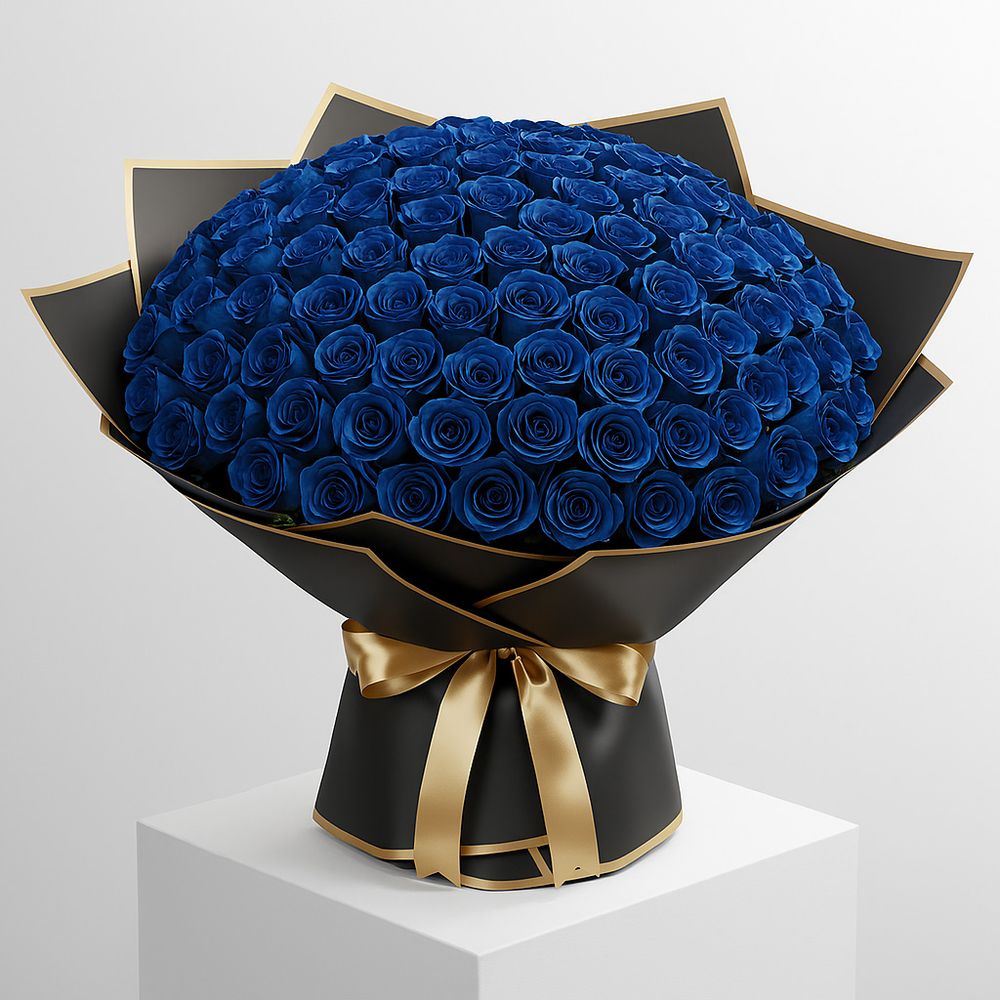 Maestoso e teatrale, il bouquet Deluxy di 100 rose blu è l’incarnazione del mistero e della meraviglia. I fiori singoli, coi loro petali vellutati e dalla tonalità intensa e surreale, raccontano una storia di fascino nascosto e desideri impossibili. Insieme, formano una cascata ipnotica di blu profondo che cattura l'immaginazione e lascia senza fiato.