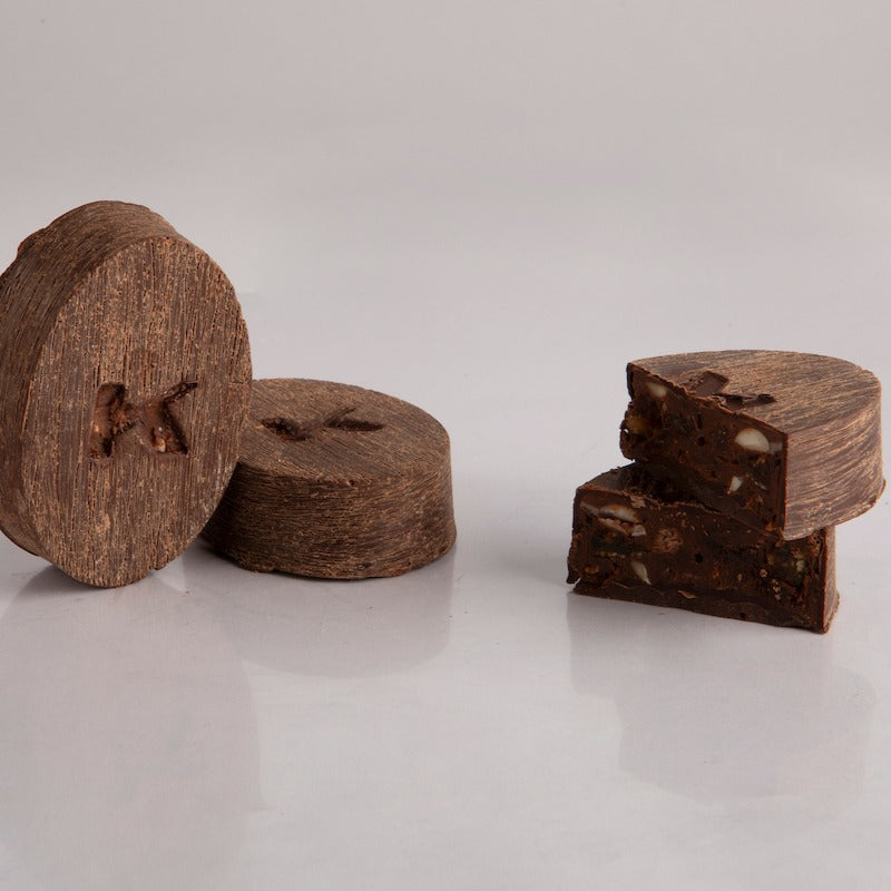 - 2 Cremini pan dei morti: guscio di cioccolato fondente Perù Pachiza 70%, farcito con cremino alla nocciola, frutta secca (fichi, uvetta e albicocche), impreziosito con diverse spezie.