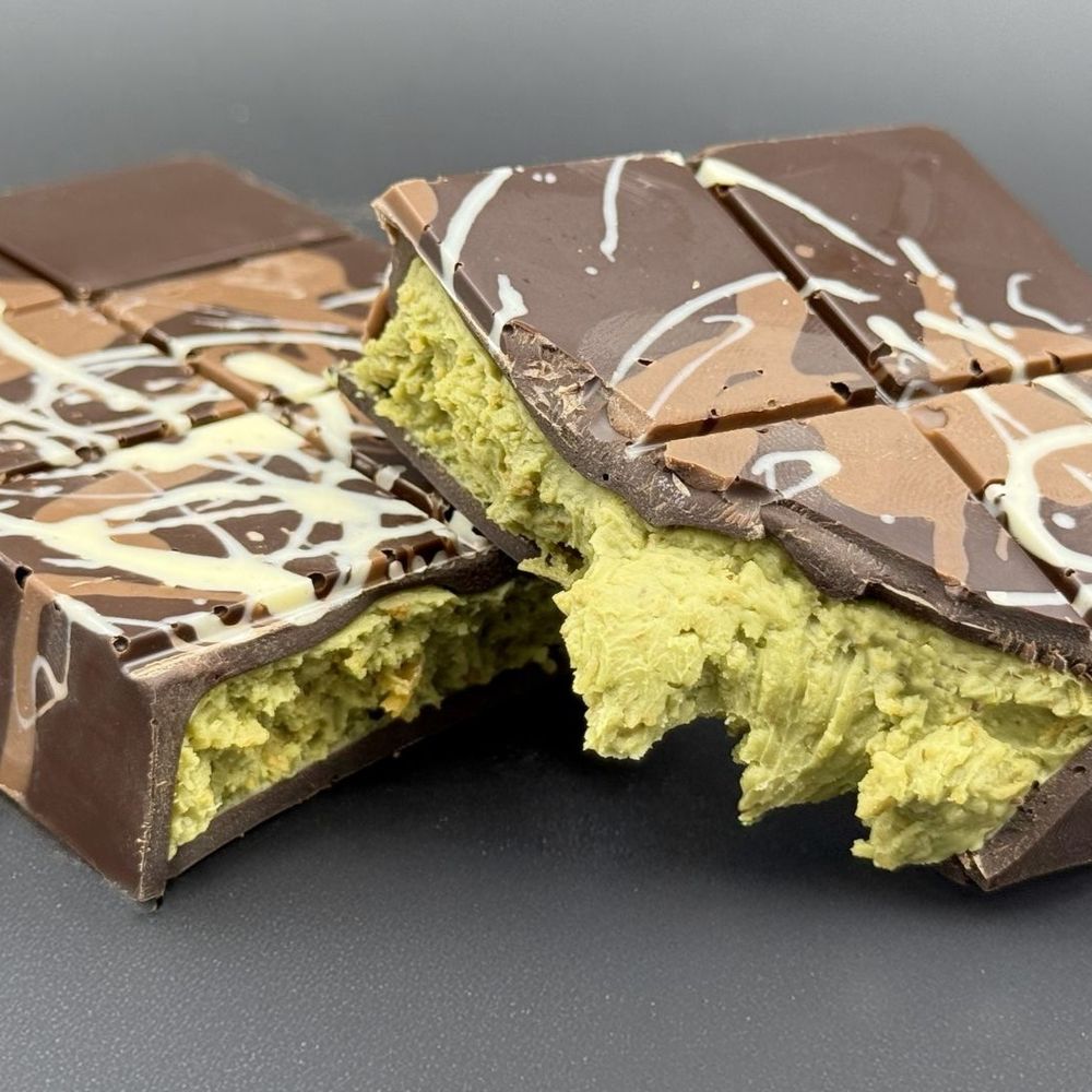 Dalla lontana Dubai un’idea originale e golosissima, un mix di cioccolato e cultura mediorientale: è la tavoletta "Can't get khanafed of it” dal sapore inconfondibile dato dal ripieno cremoso al pistacchio e dalla croccantezza della pasta kataifi. Ogni pezzo è un autentico capolavoro creato con passione e maestria dallo Chef Maître Chocolatier Ernst Knam.