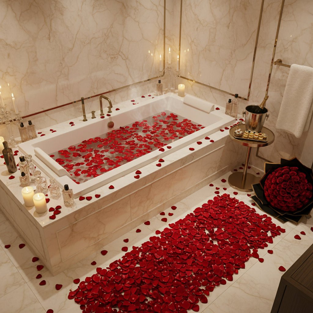 - Originali Deluxy: petali di rose rosse, candele e prodotti da bagno