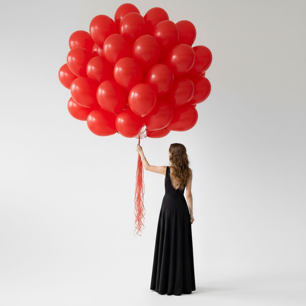 Helium-filled balloons, in your favorite color, designed to add a special touch to any occasion. Arranged in a large, dramatic bunch, they rise with effortless elegance, instantly creating a festive atmosphere.