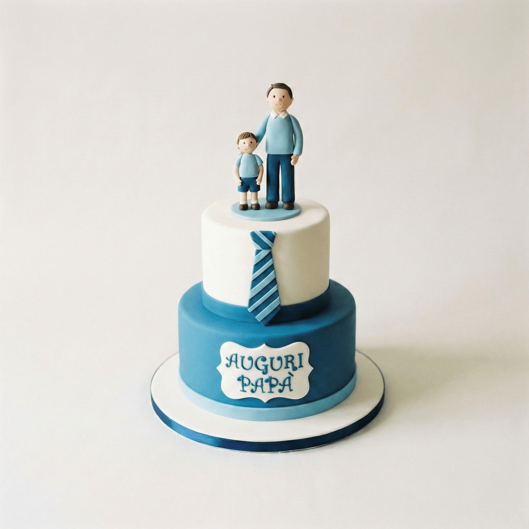 At the top, the scene that makes this dessert truly special: a father and his son/daughter, side by side, carefully crafted. An image that speaks of protection, of complicity, of those simple moments that become precious memories.