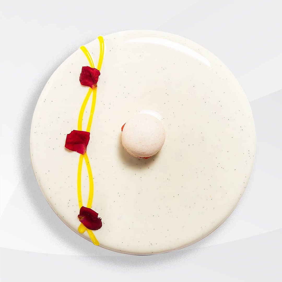 - Filling: Greek yogurt cream, wild strawberries, Bancha tea mousse