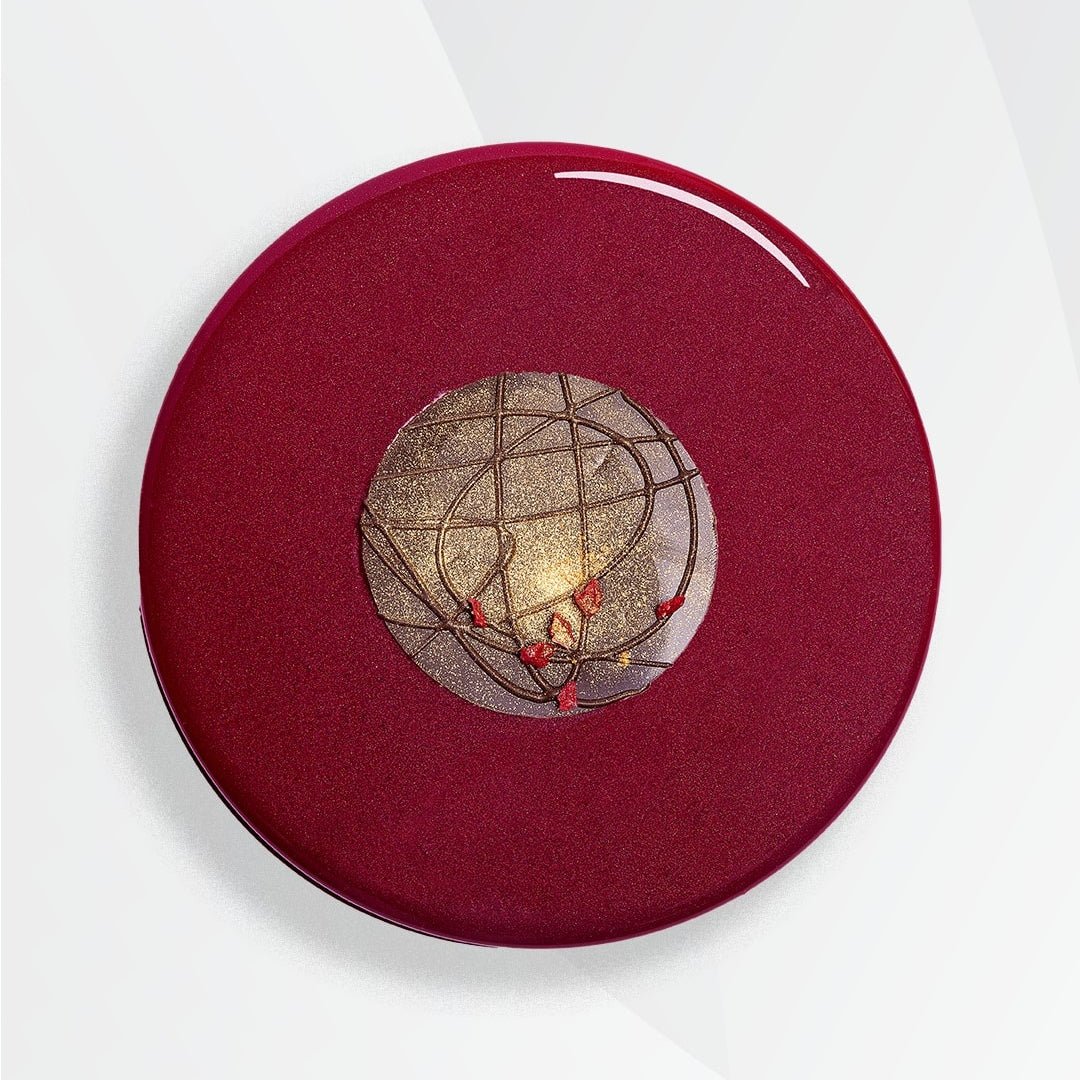 - Filling: salted almond cream, citrus and basil jelly, raspberry mousse