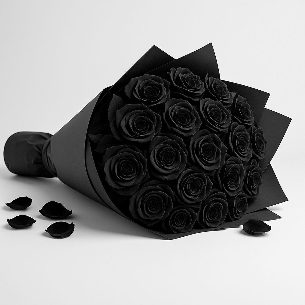 Black roses are the emblem of enigma and transformation, often associated with profound emotions or the beauty that emerges from shadows and becomes light. Their dark, velvety hue captivates the eye, adding a bold and magnetic touch to any space.