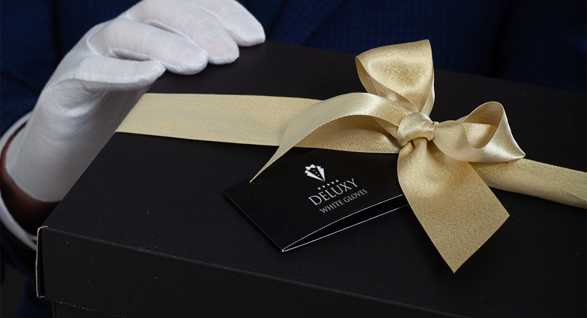 That's why we're the first luxury delivery service that lets you send and receive flowers, cakes, and exciting surprises, all dressed in a suit, tie, and white gloves.