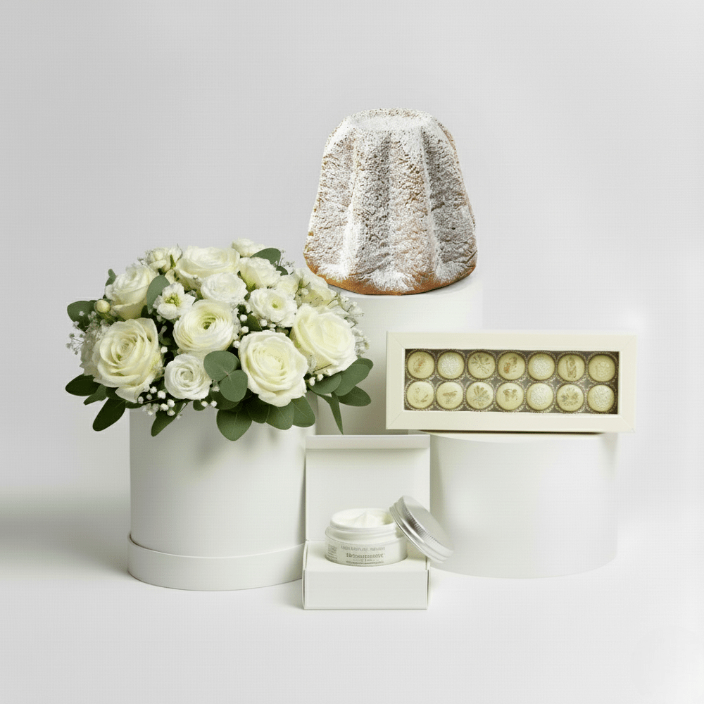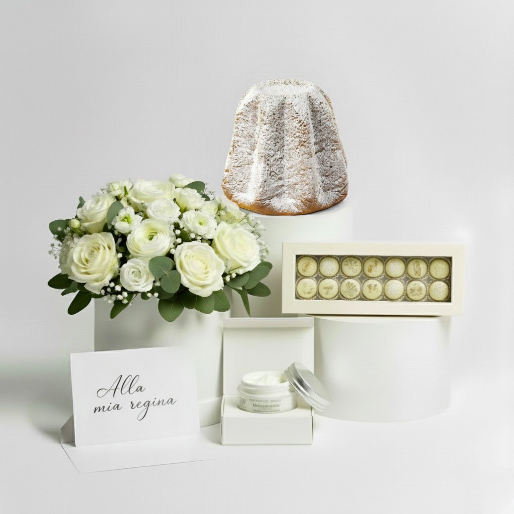 • Originali Deluxy: pandoro artigianale, macarons, cappelliera natalizia e crema idratante viso